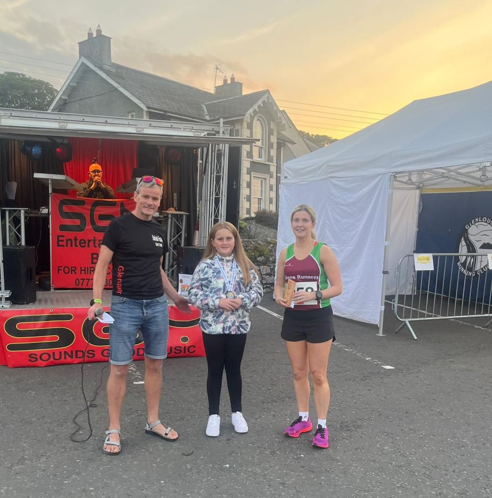 Glens runners were well represented, Niamh Marrs made the podium placing 3rd with some great times from Padraic Quinn 19.39, KellyAnn McAuley 19.40, Declan McNaughton 20.02, Mickey McCurry 24.29, Anna Steede 25.17, Andrea Mcallister 25.31 and Mary Duffin 26.24.