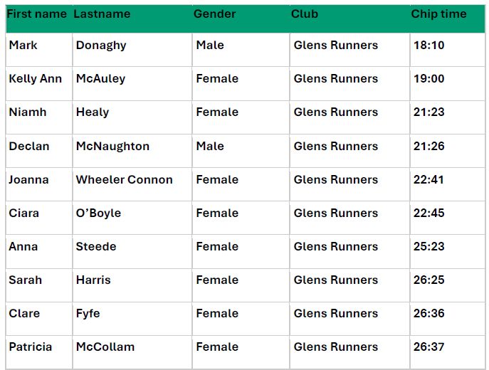 Huge thanks to Glenlough Running Club and all the volunteers for a brilliantly organised event.